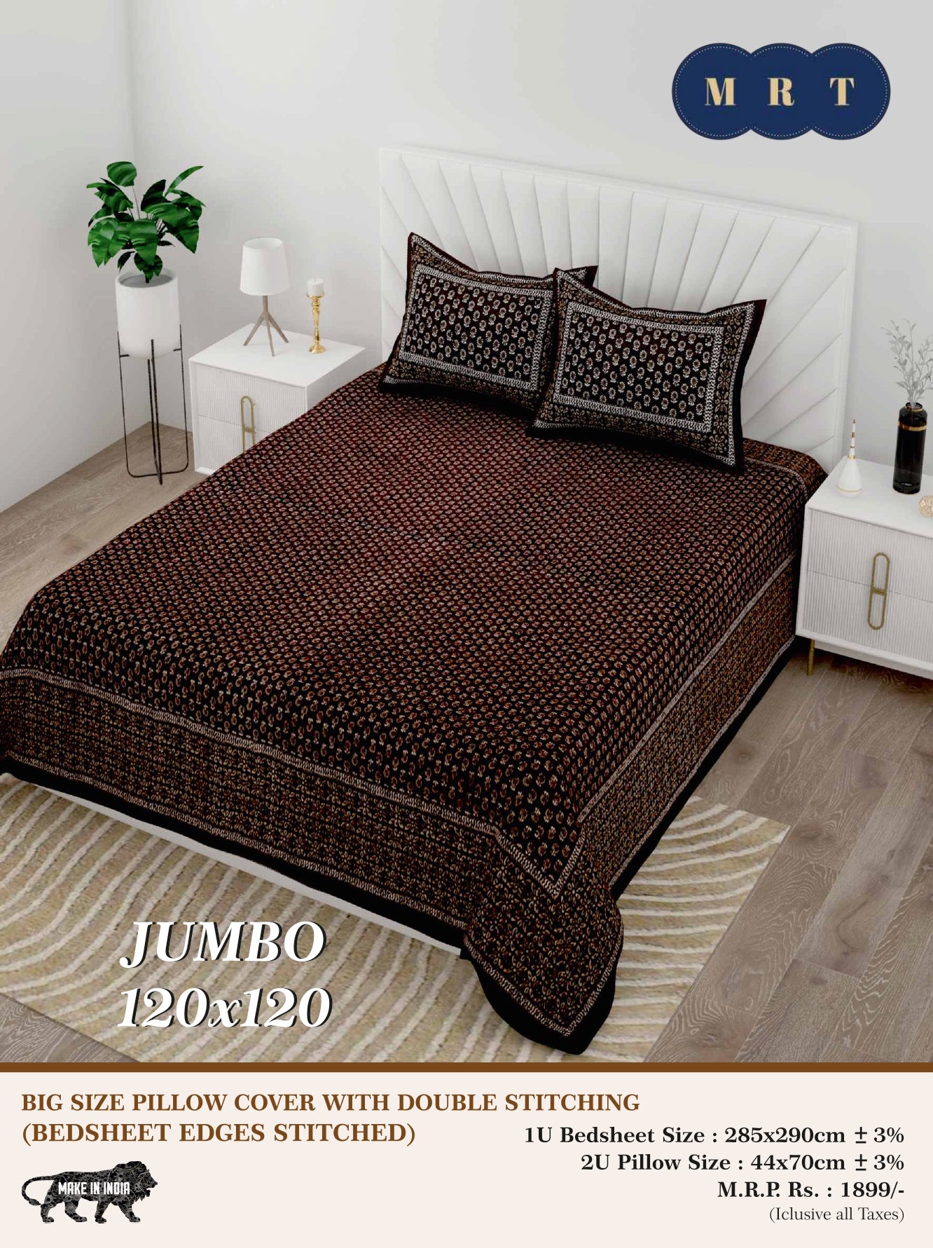 • Jumbo Size Bedsheet – fits large beds comfortably
